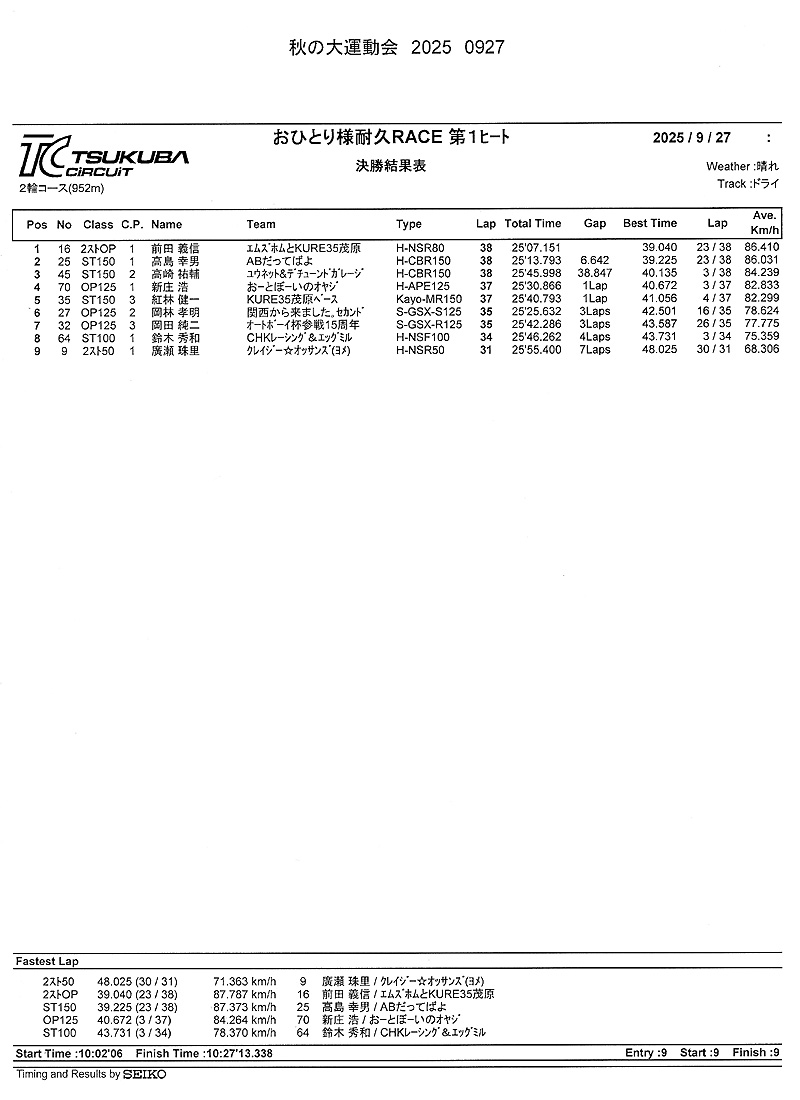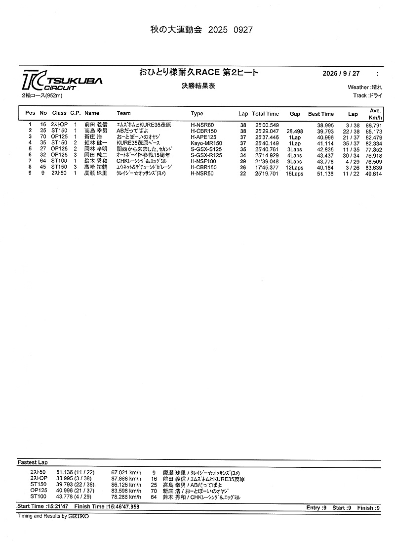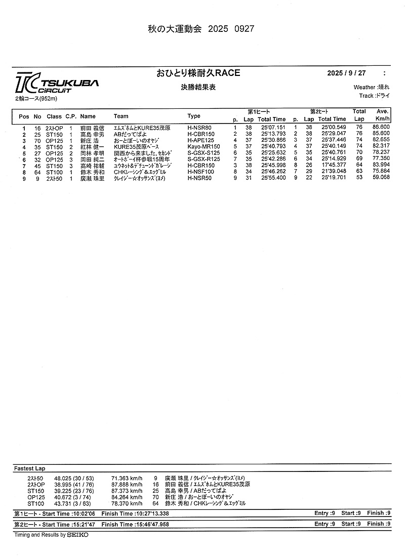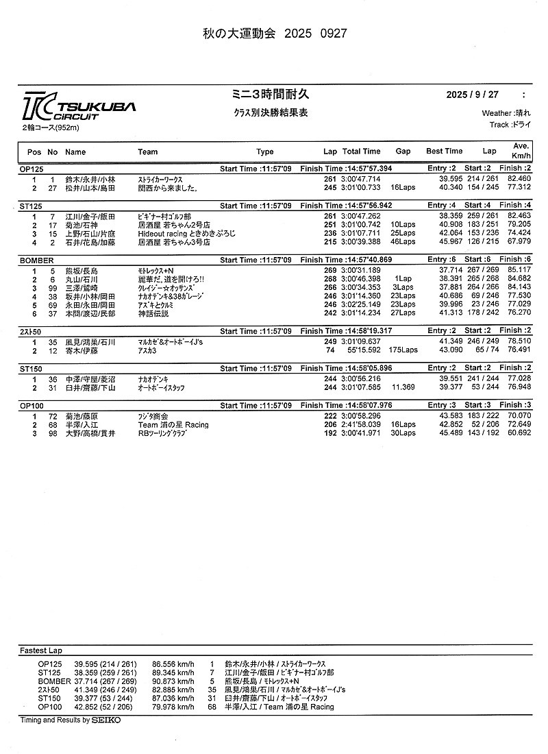 ■3時間耐久 オープン125クラス | |||||||||||||||||||||||||||||||||||||||||||||||||||||||||||||||||||||||||||||||||||||||||||||